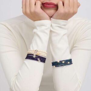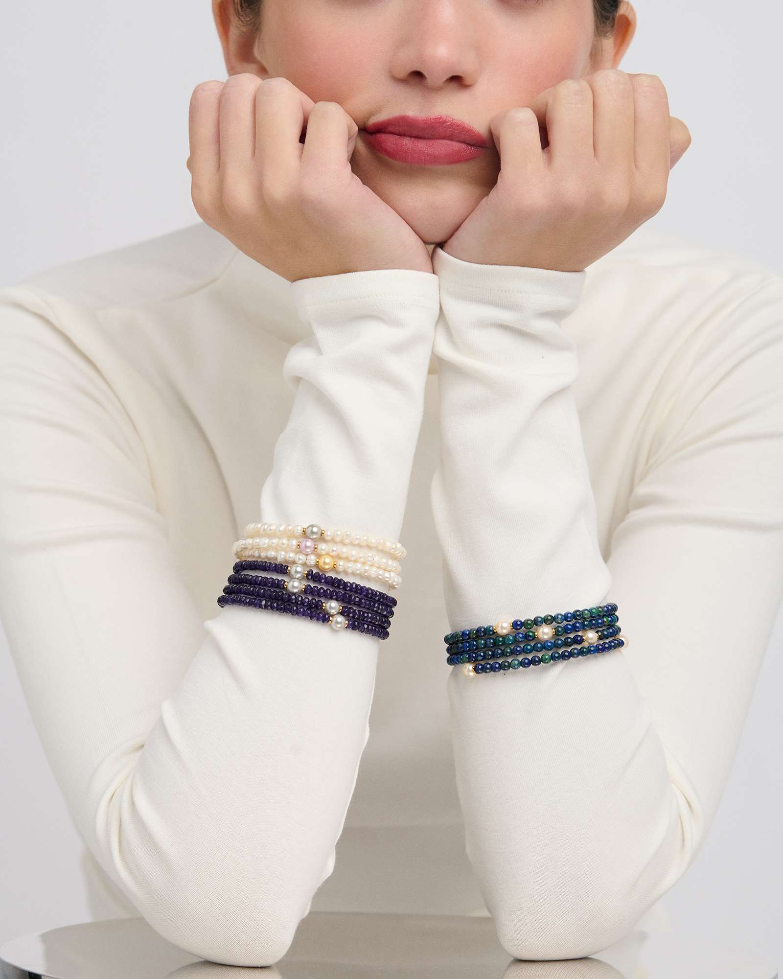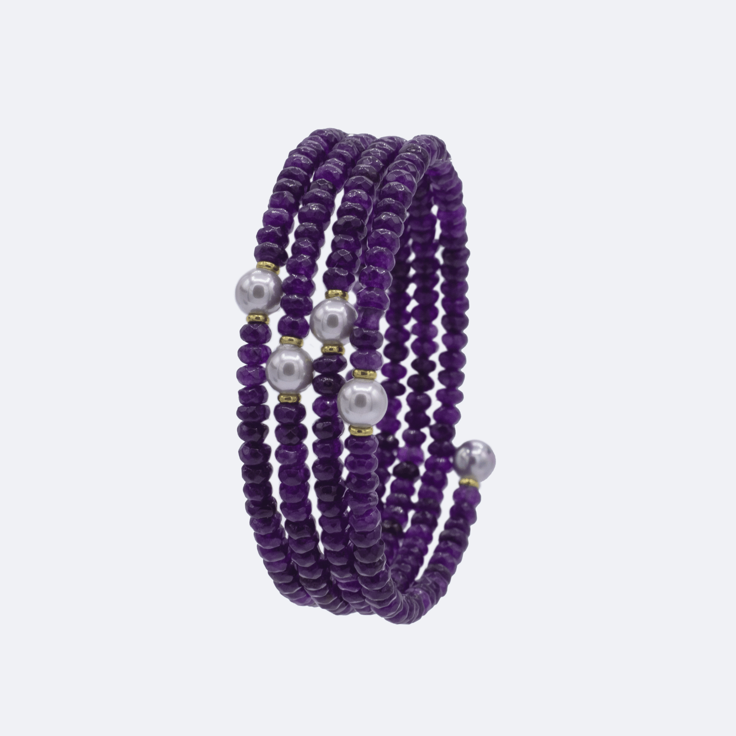 Brazalete amatista plana facetada y perla gris esférica de 8mm. Las piedras naturales utilizadas para elaborar este diseño pueden tener tonalidades diferentes a las que aparecen en la imagen del producto.