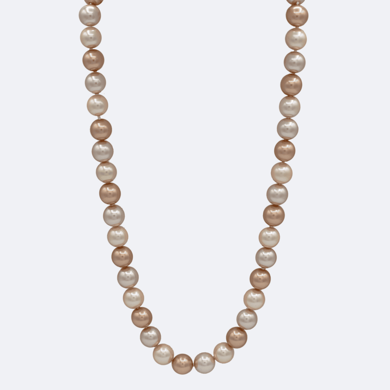 Collar de perla cultivada en tonos crema, marrón y rosados.