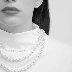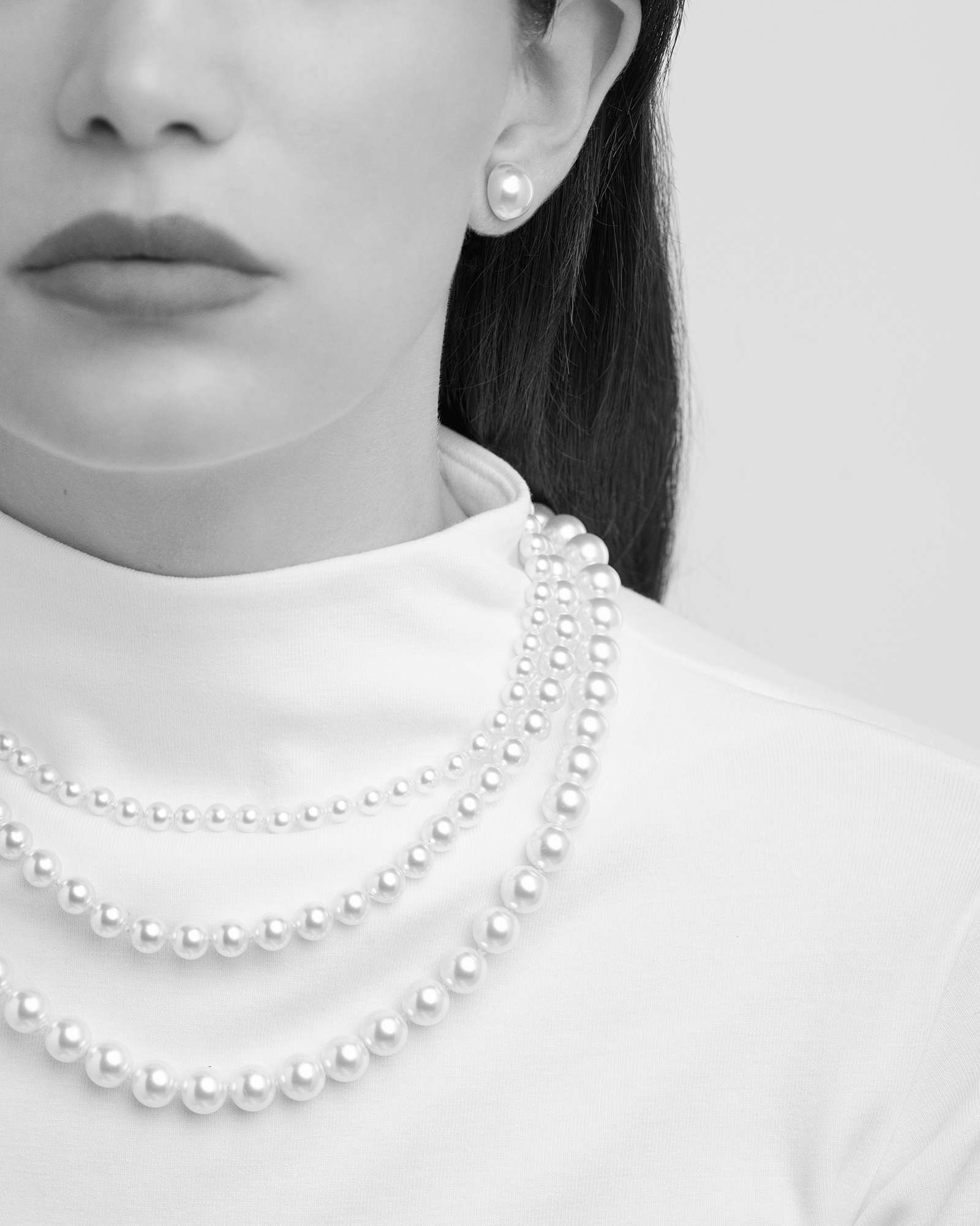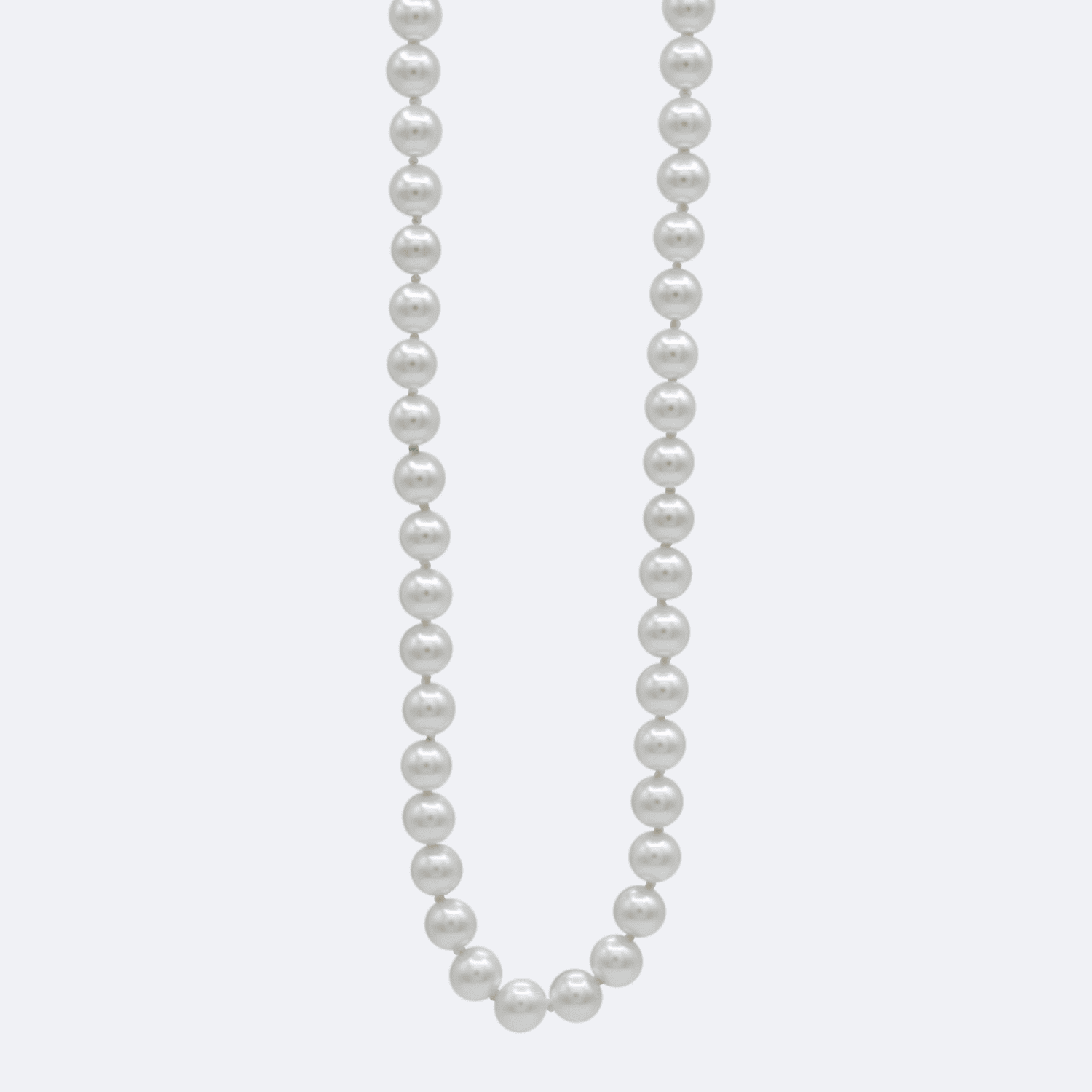 Collar perla esférica blanca. Cierre tipo mosquetón. 45cm