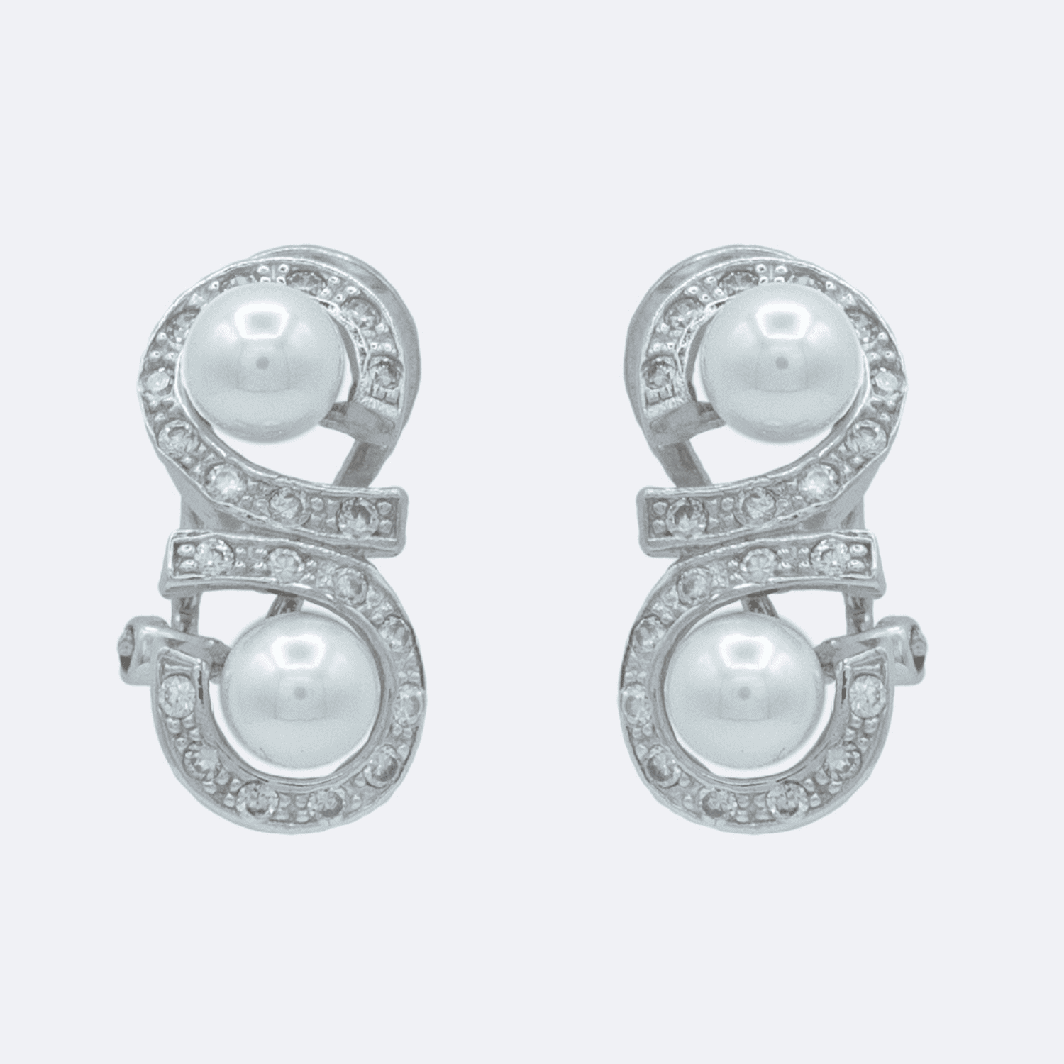 Pendiente doble con perlas blancas envuelto en circonitas. Cierre Omega.
