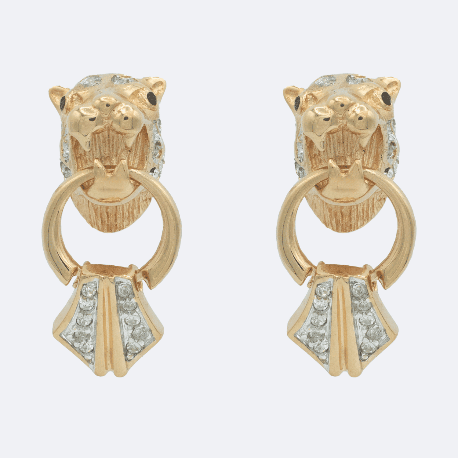 Pendiente vintage en forma de tigre con detalles en circonitas blancas. Chapado en oro.