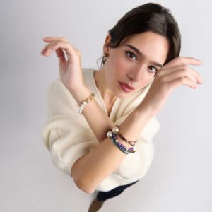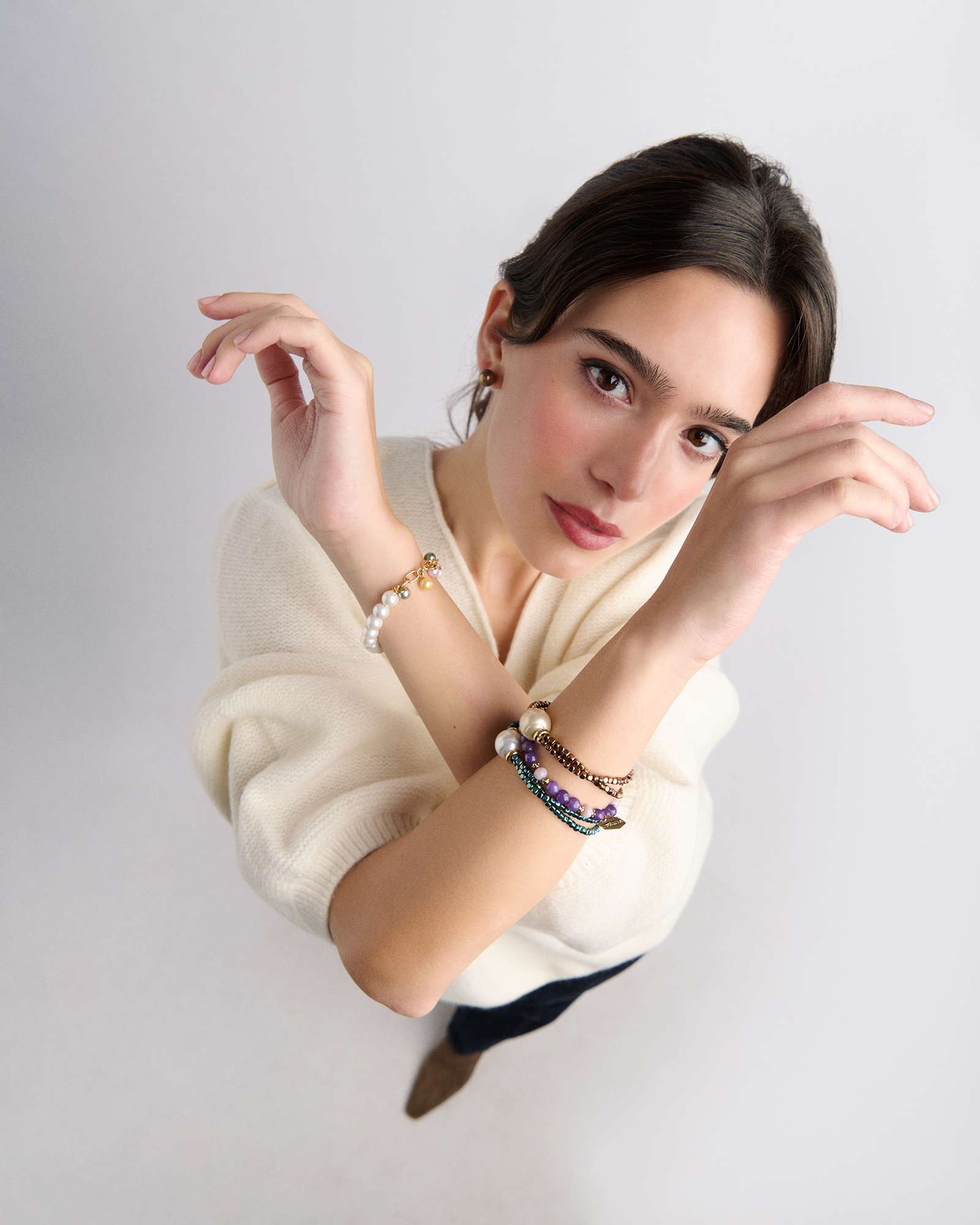 Pulsera doble elástica en hematita marrón con perla barroca.